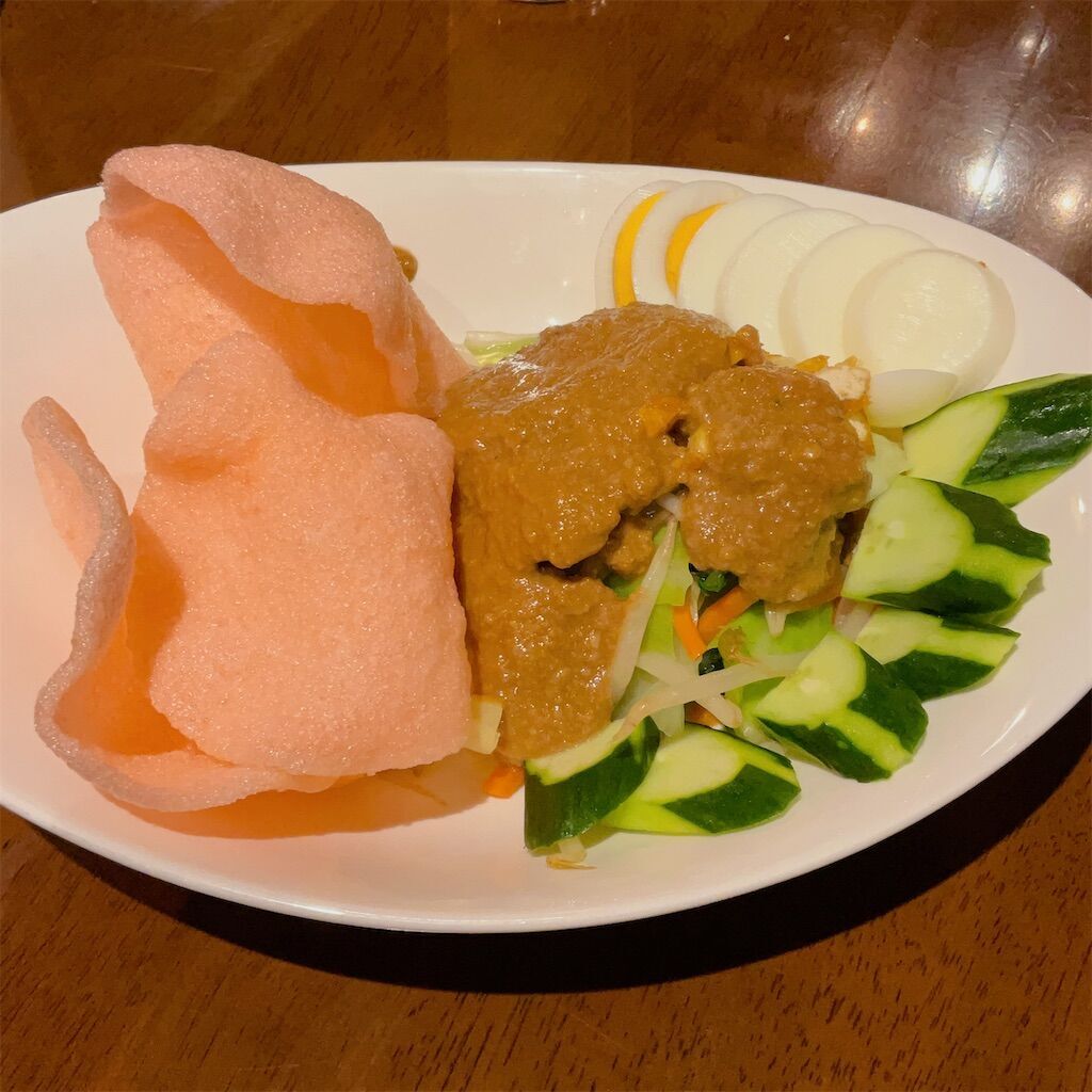 ガドガドというのはインドネシア風ピーナッツソースのことだそうで、そのまんまゆで野菜にたっぷりとかけていただくサラダ。